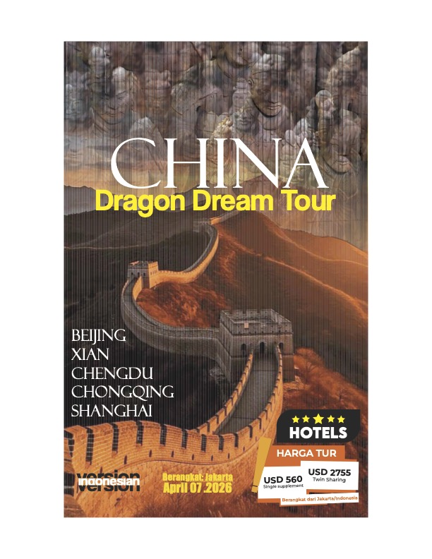 CHINA DRAGON DREAM TOUR 12 DAYS Departure: April 7, 2026/TUES From SEATTLE, USA, JAKARTA, Indonesia, and BRISBANE, Australia Read More »